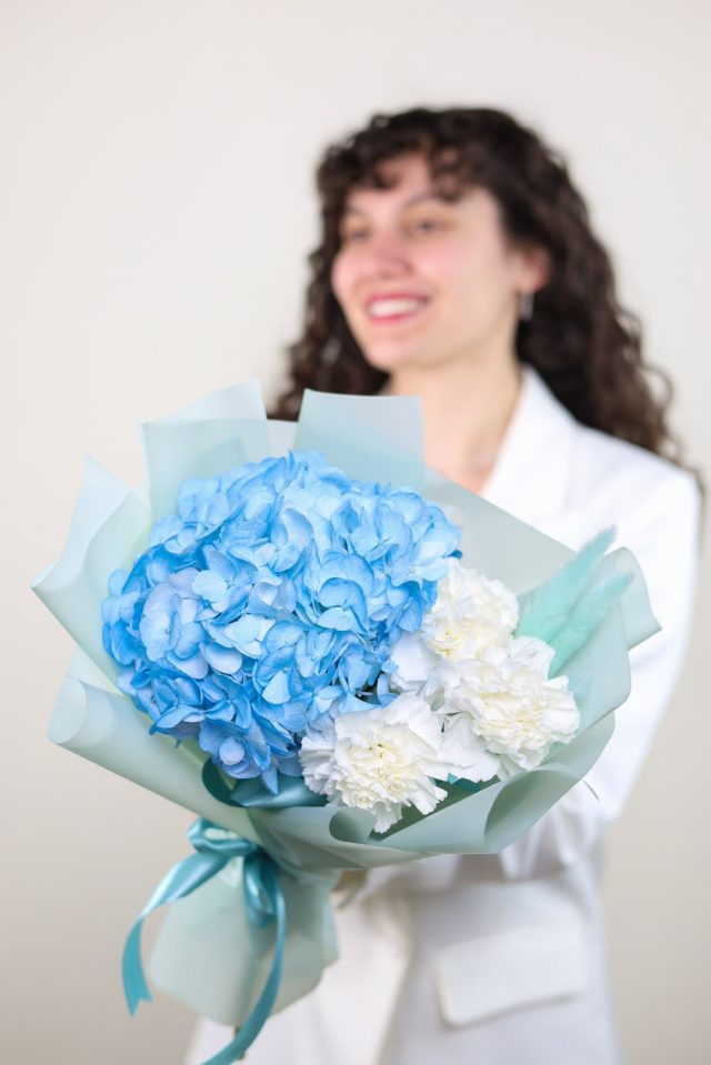 Состав: гортензия, стойкие диантусы и сухоцветы.