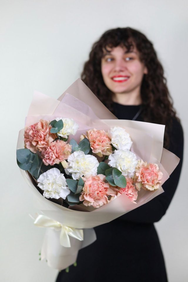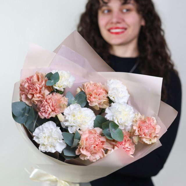Букет стойких диантусов и эвкалипта