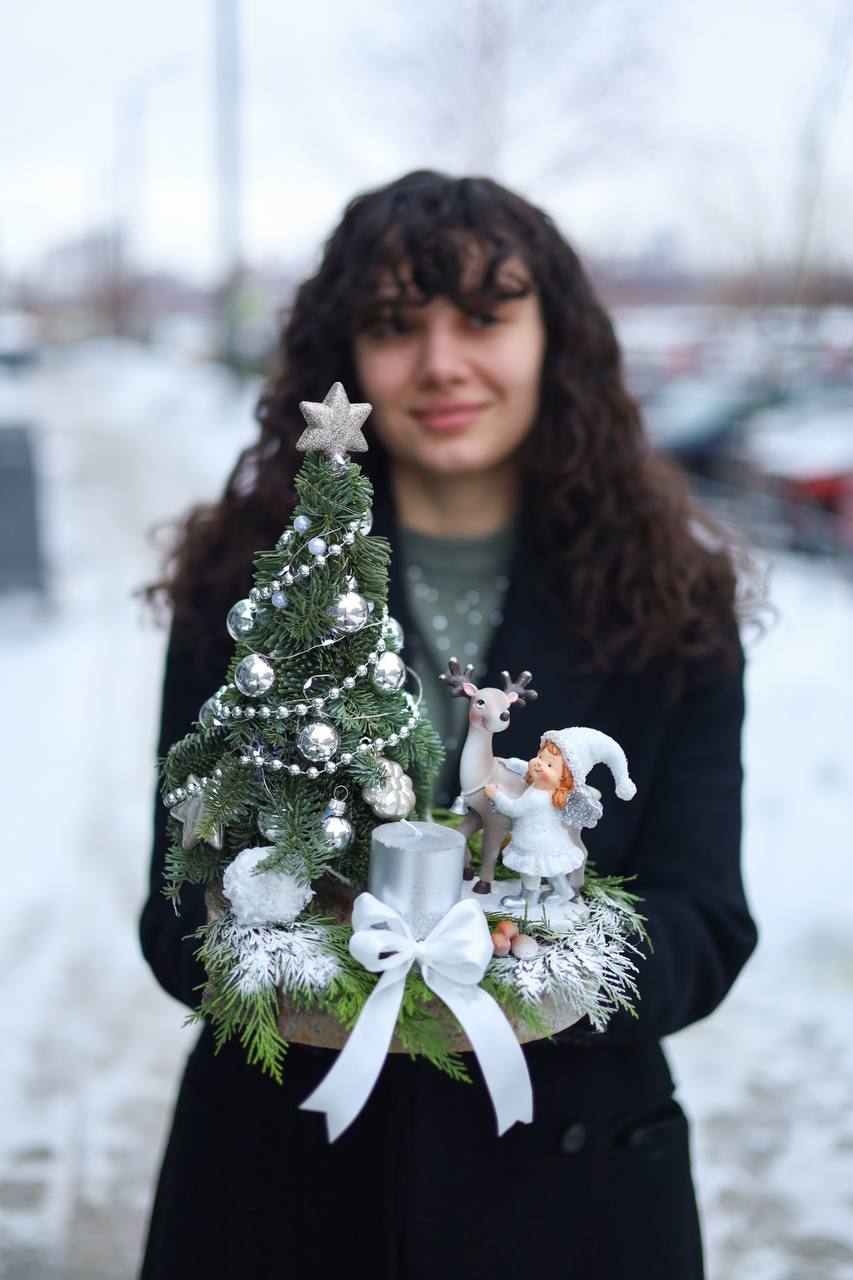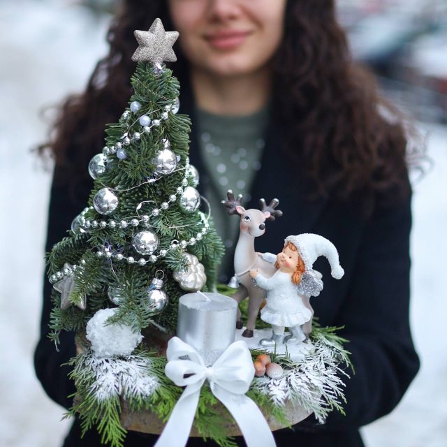 Очаровательная композиция из ароматной ели и милых фигурок. Такая ёлочка привнесет теплую атмосферу и чувство праздника в любой дом.