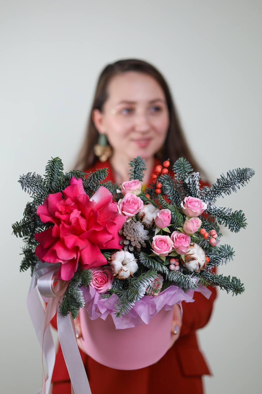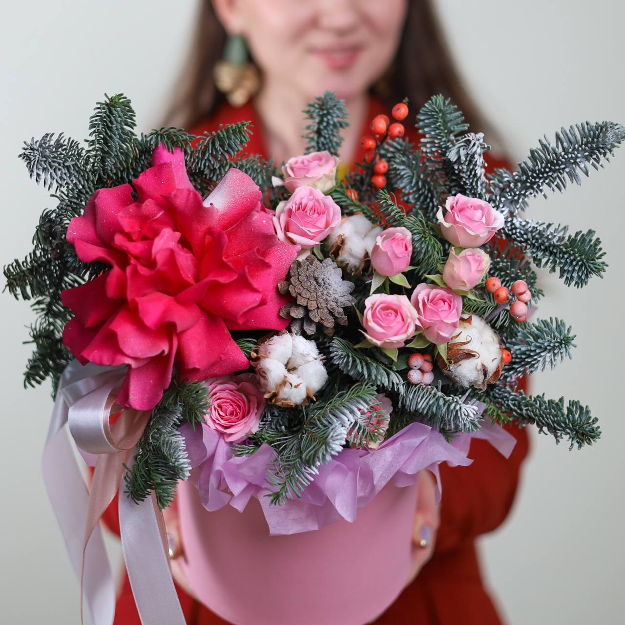 Состав: нобилис, французская и кустовая роза, шишки, илекс, хлопок.
