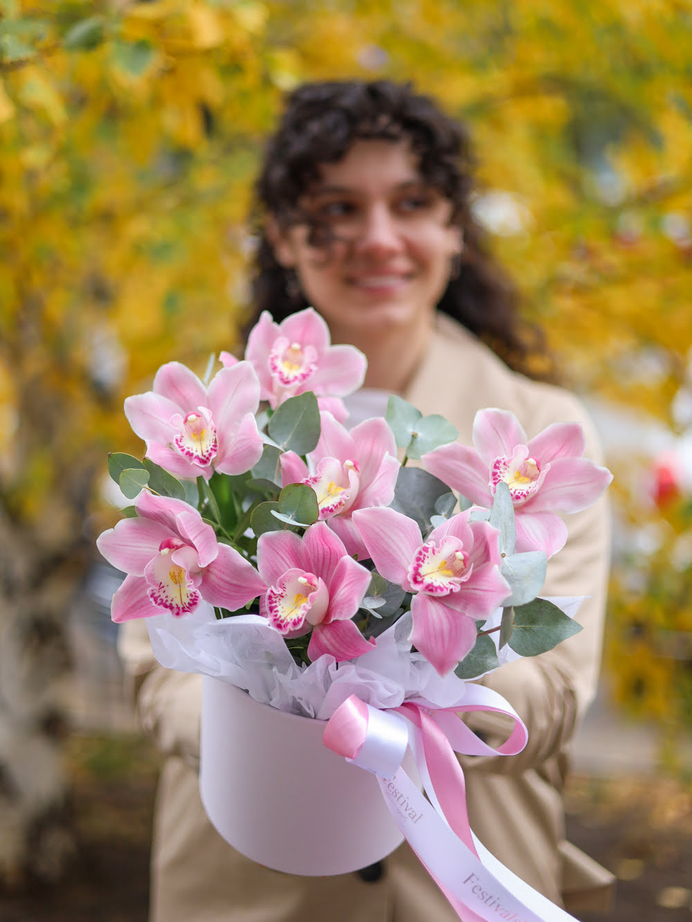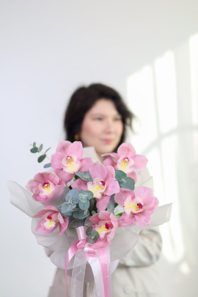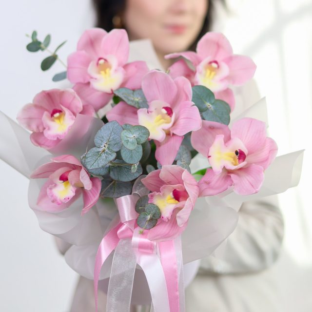 Композиция с орхидеями и эвкалиптом