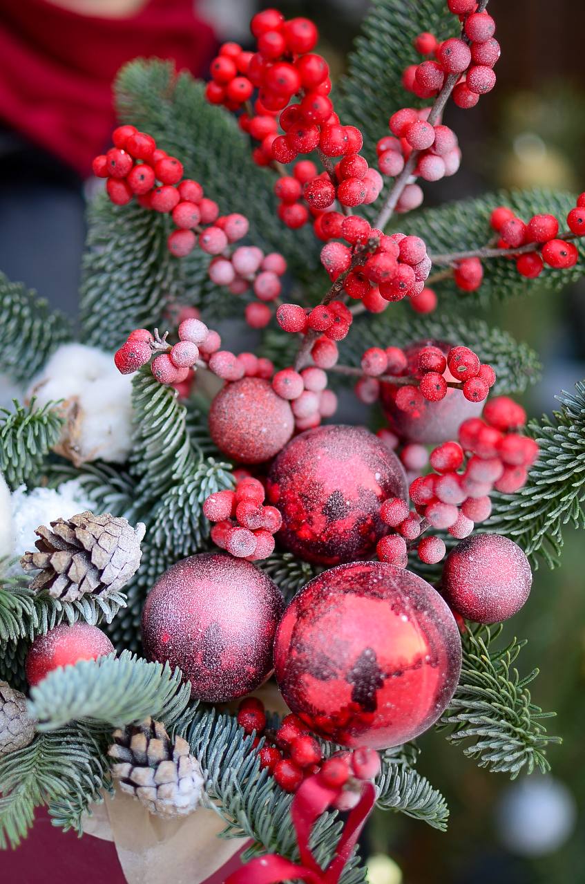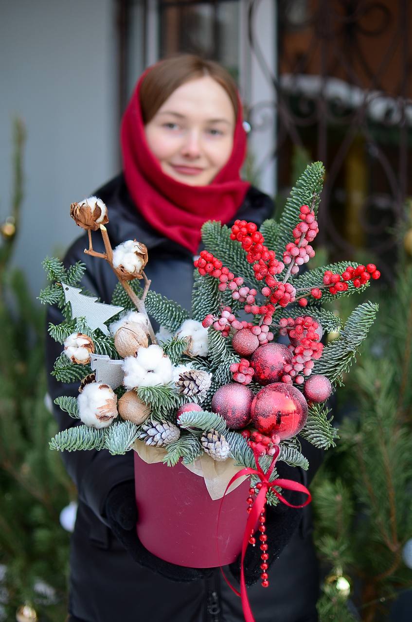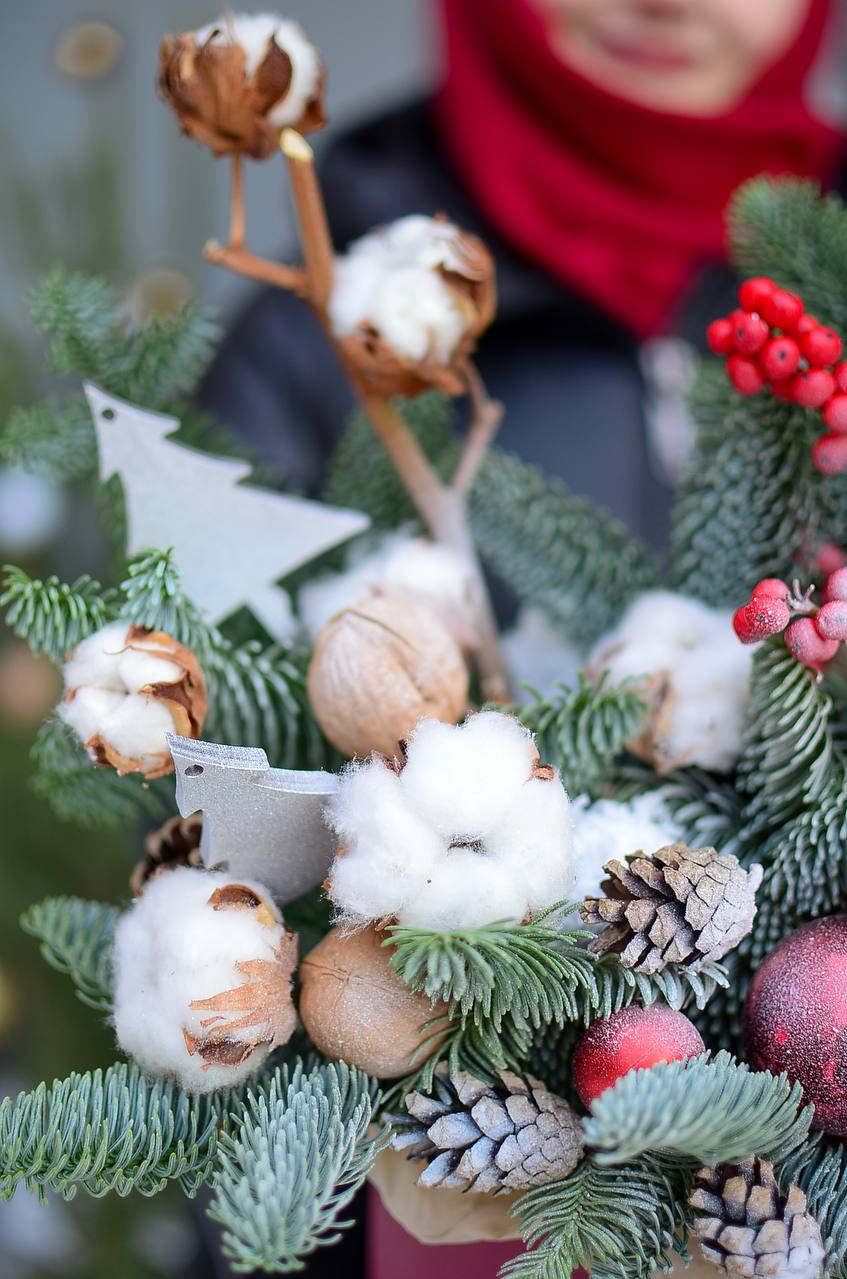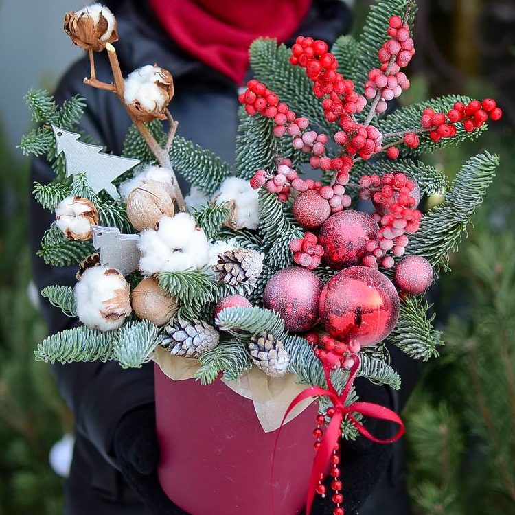 В композиции: нобилис, шишки, натуральный хлопок, декор, крупная ветка илекса.