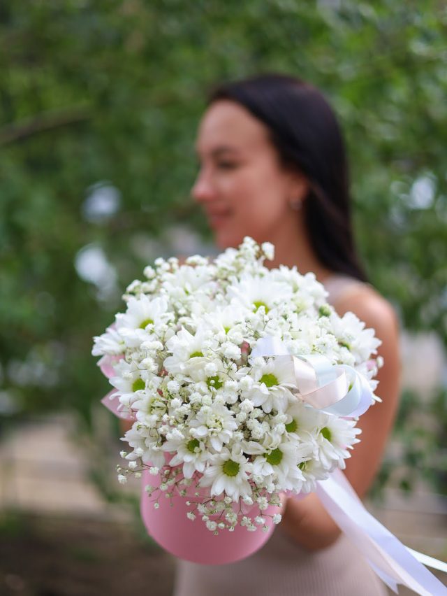 Чудесная композиция в белой гамме в шляпной коробке.