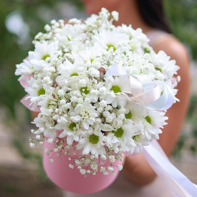 Состав: стойкие хризантема и гипсофила.