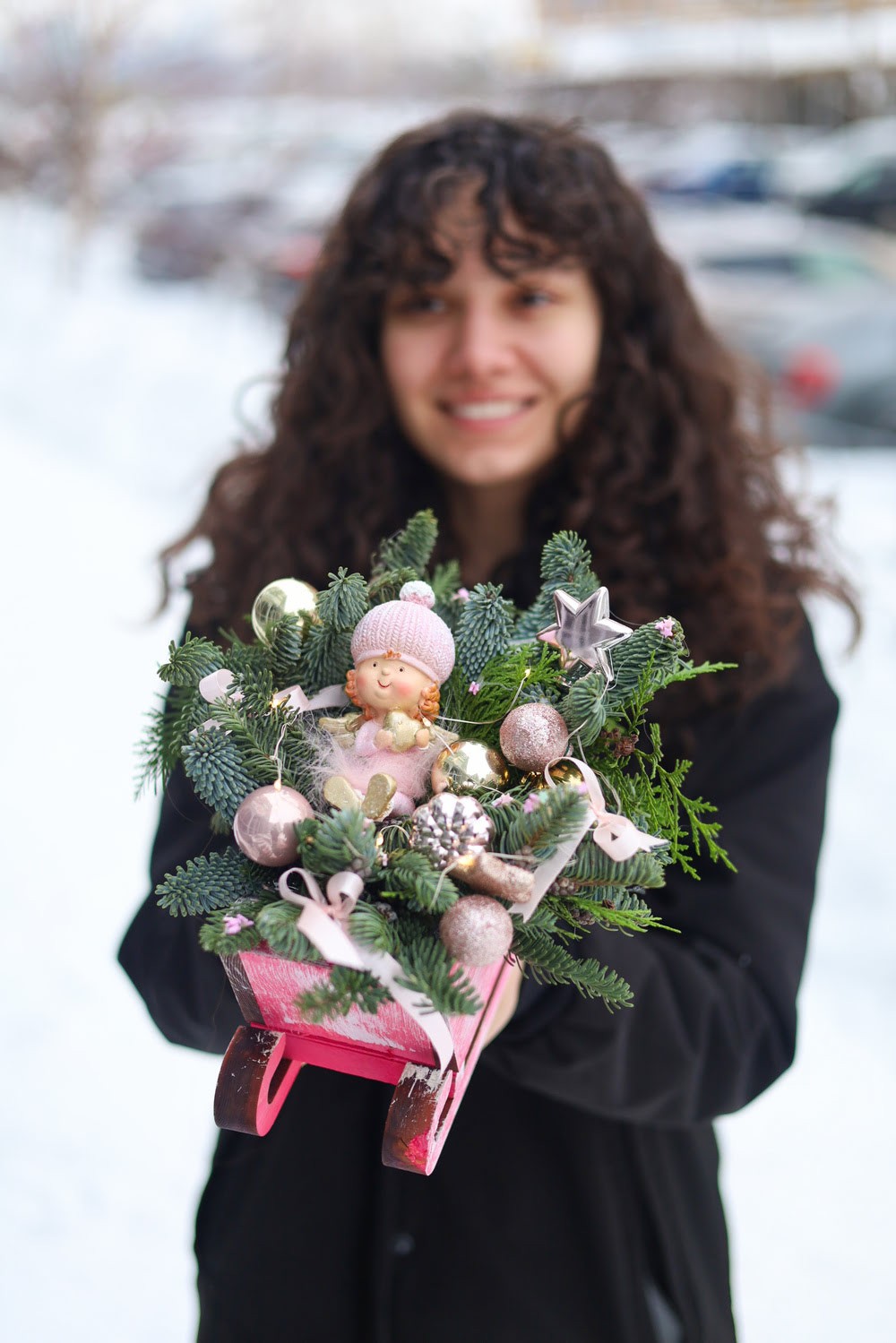 Состав: натуральный нобилис, новогодний декор, фигурка куколка. Высота около 25 см.