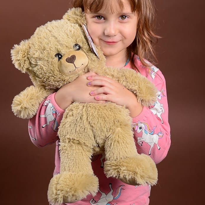 Мягкий и веселый медвежонок Джим кофейного цвета.