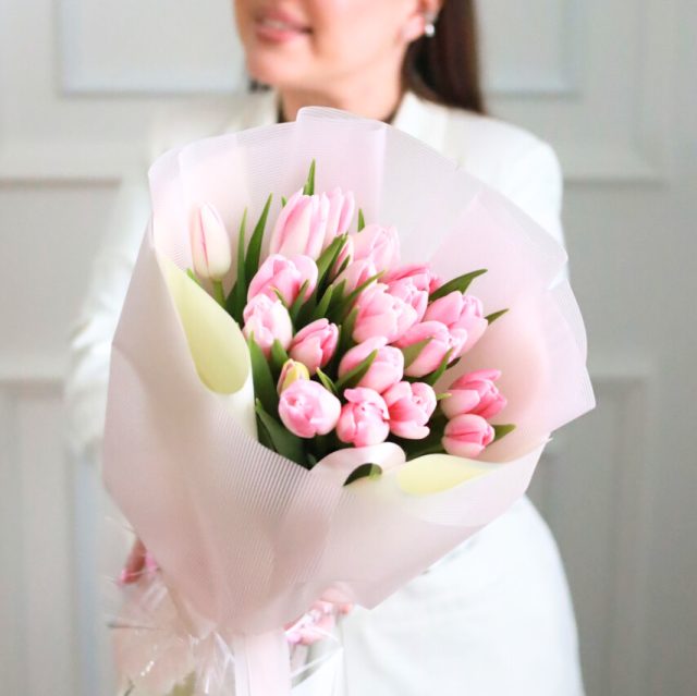 Милый букет из 21 розового тюльпана