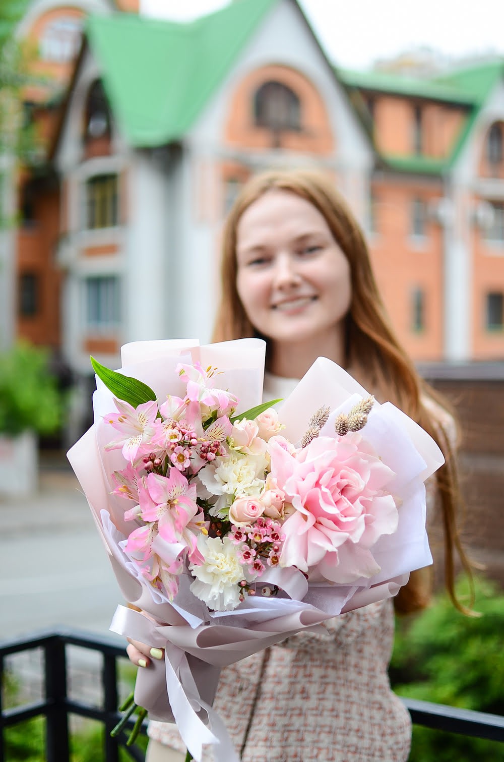 Милый букет с розами и альстромерией