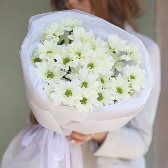 Очаровательный букет из 3-х веток кремовой хризантемы.