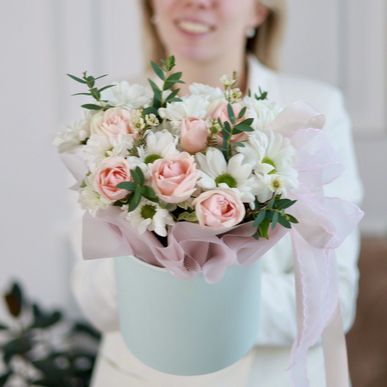 Нежная композиция с розочками и хризантемами