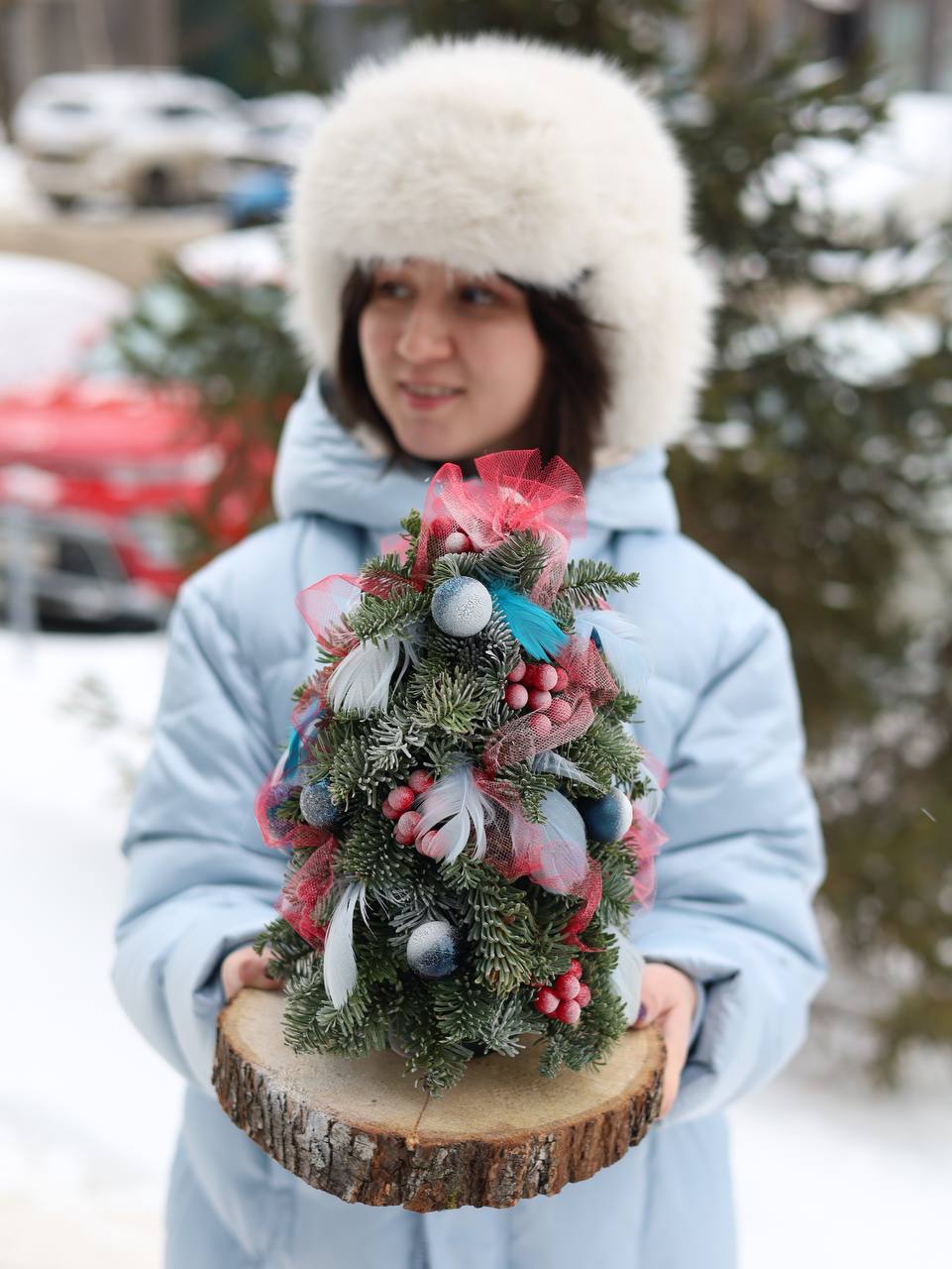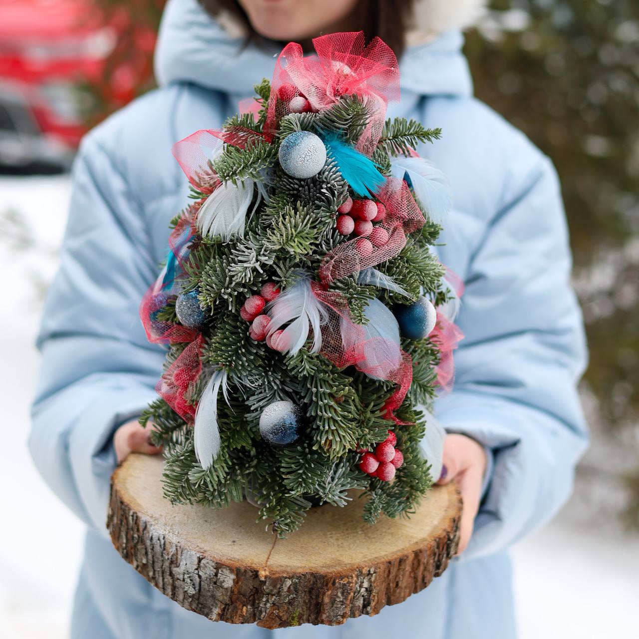 Очаровательная зимняя композиция с декором на спиле – идеальный подарок и элемент интерьера.