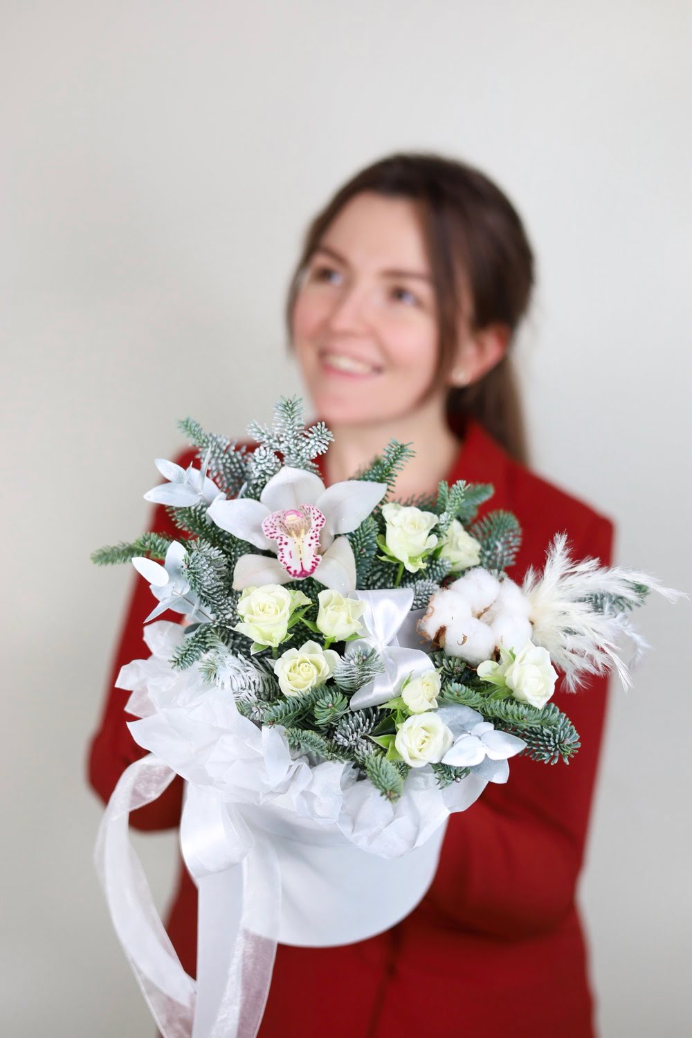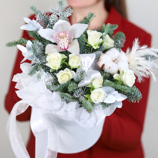 Зимняя композиция с орхидеей