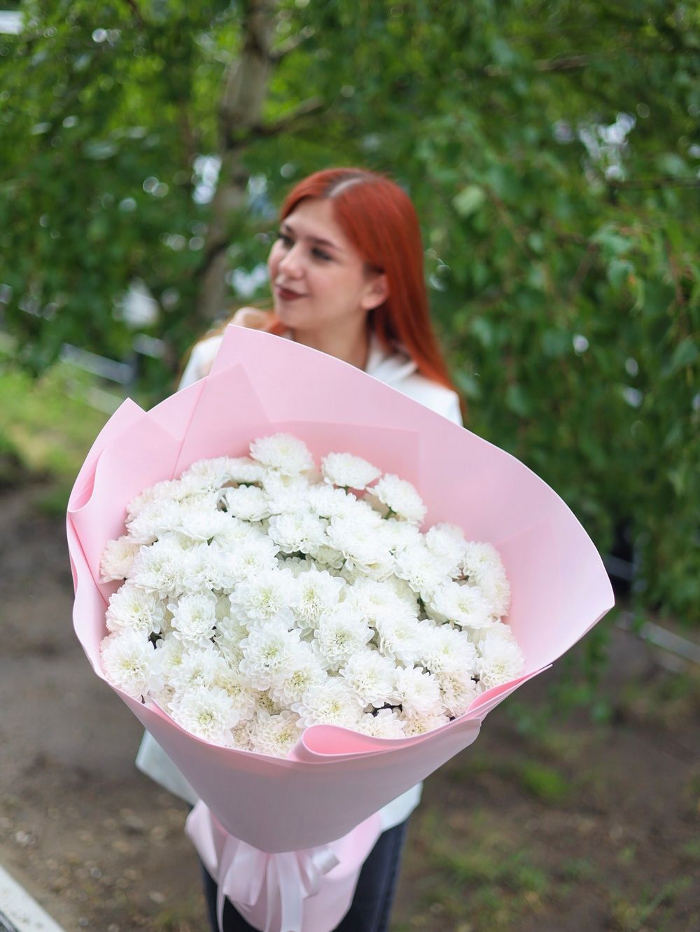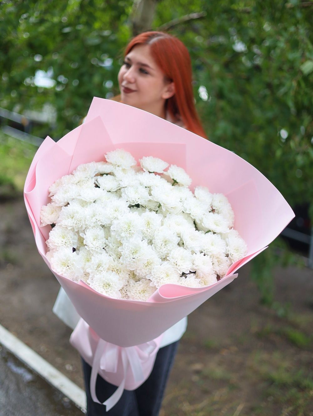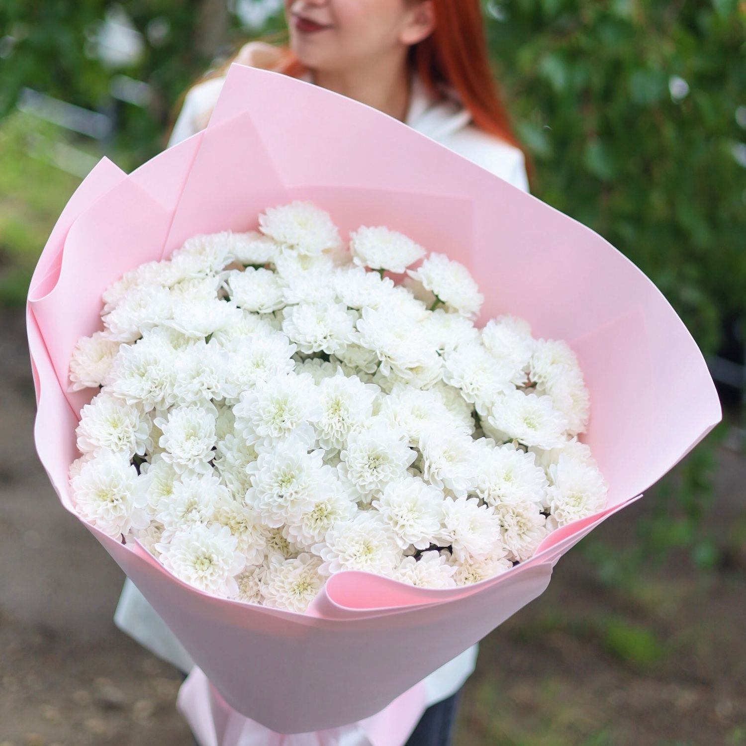Восхитительный букет из 21-ой ветки белых кустовых хризантем сорта Балтика.