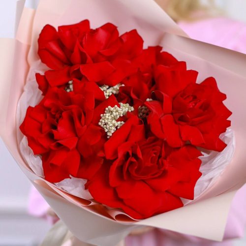 Все букеты собираются максимально похожими, в том числе и оформление.