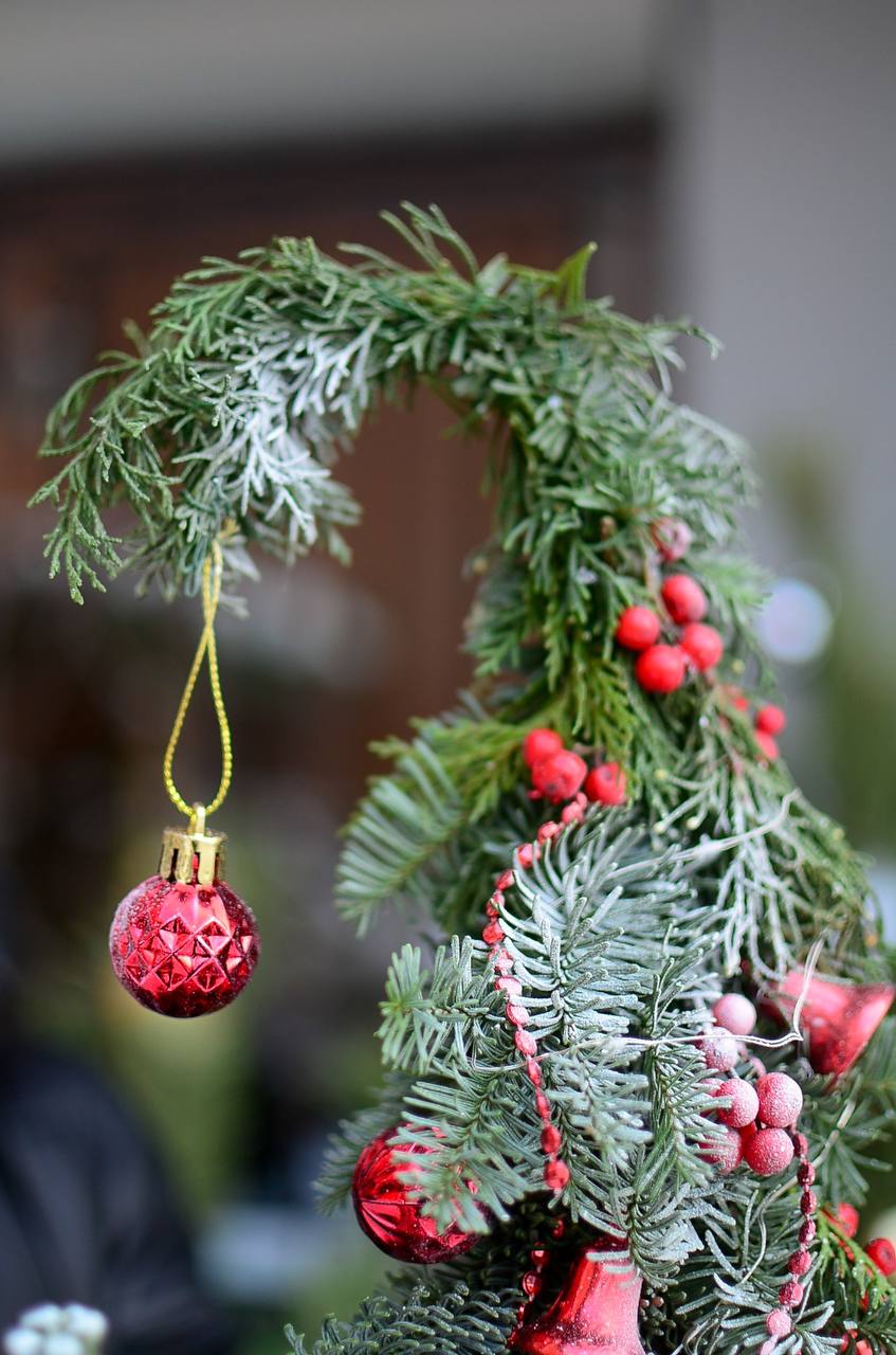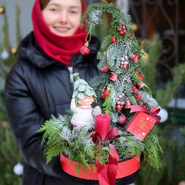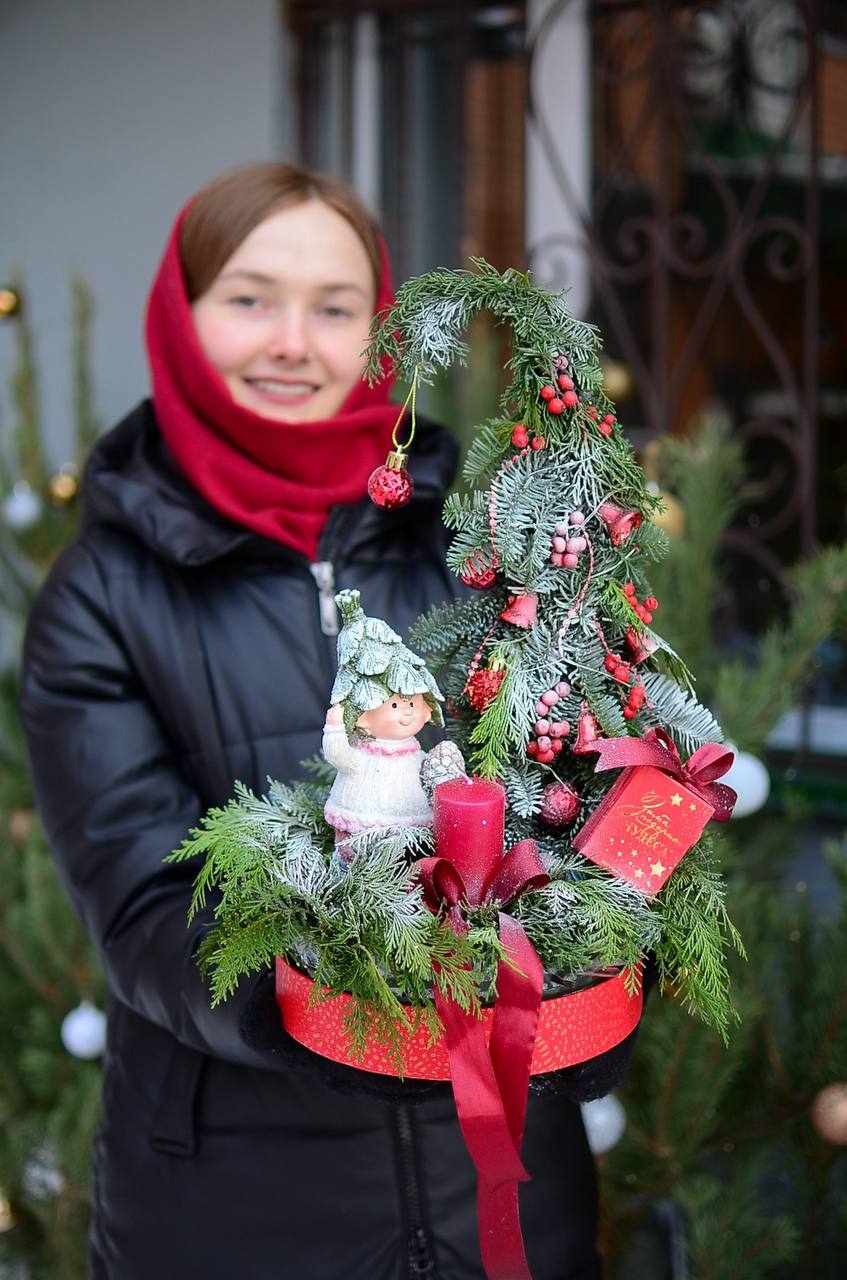 В композиции: ёлка из нобилиса и хвои, игрушка, свеча, новогодний декор, илекс.
