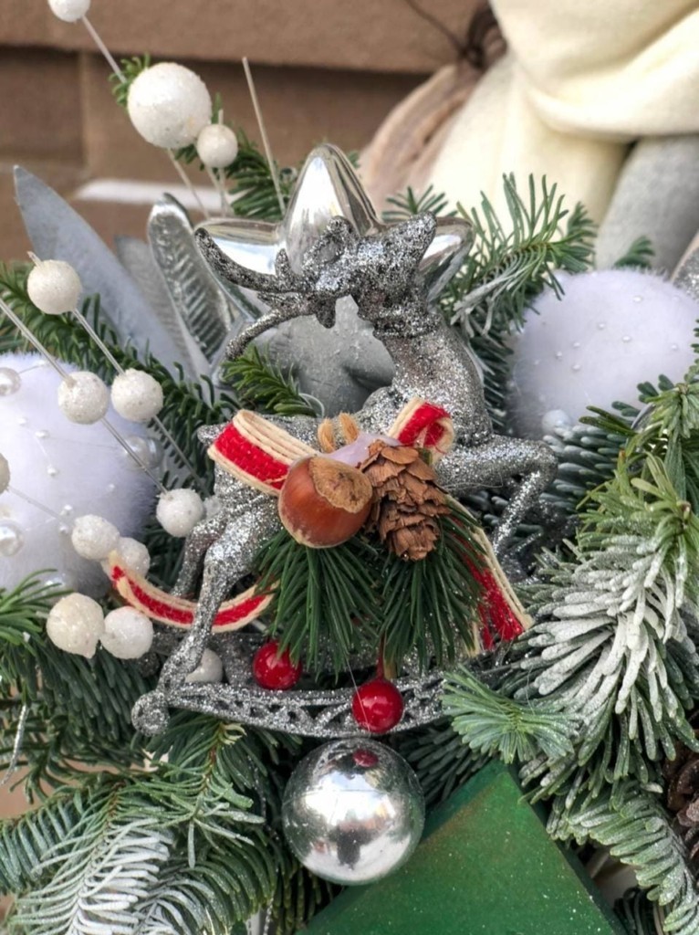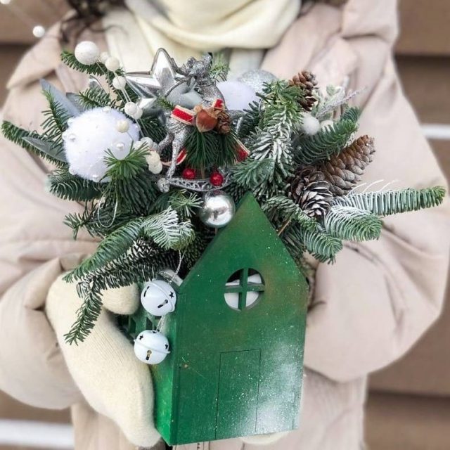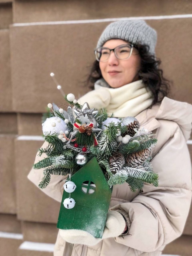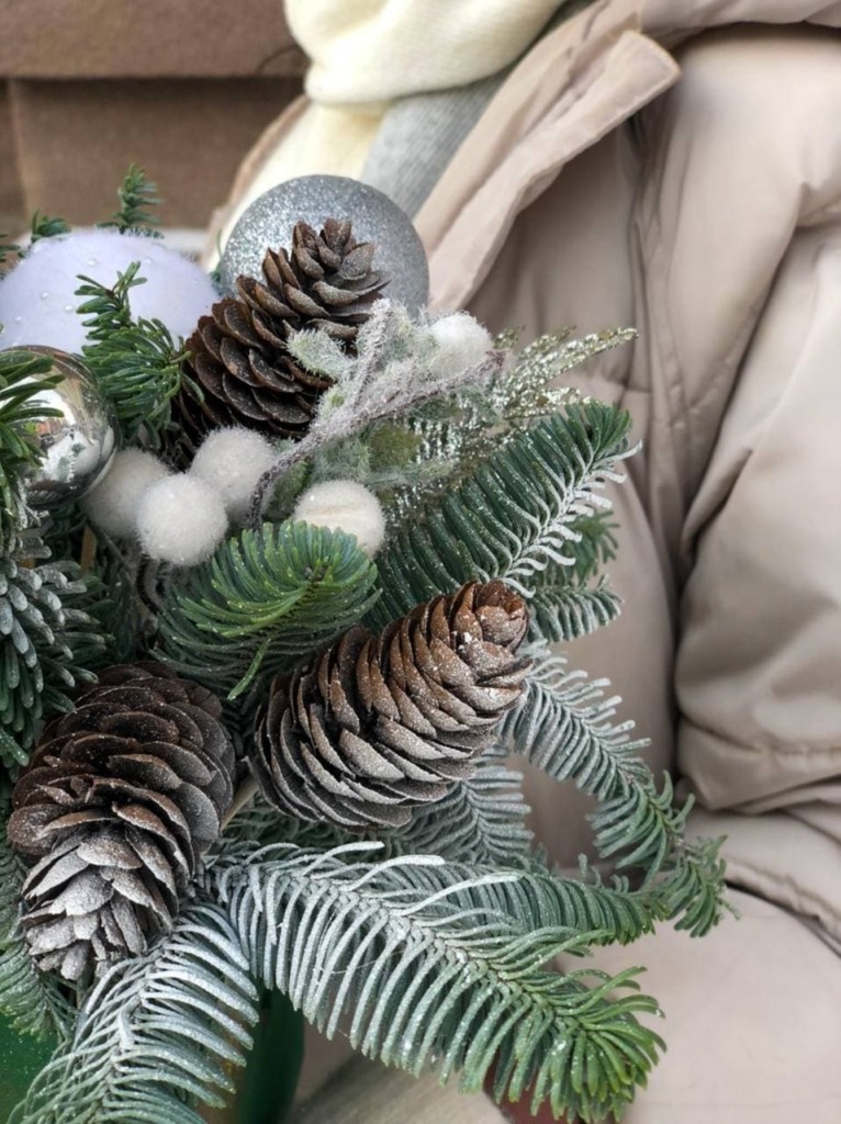 Очаровательная авторская композиция с нобилисом, новогодним декором, шишками и снегом в оригинальном оформлении. Высота около 25-30 см.