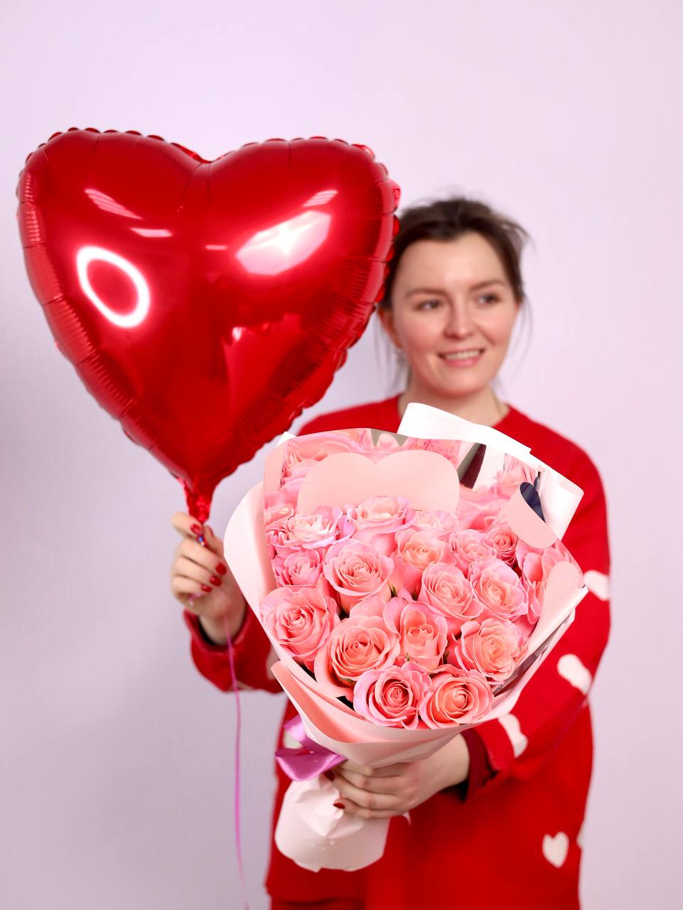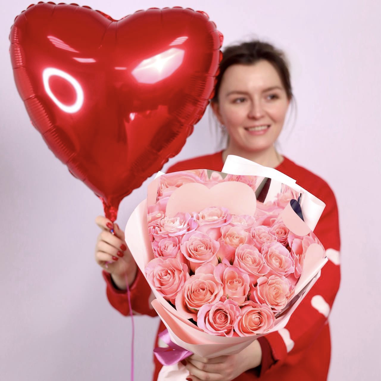 Праздничный сет с розовыми розами и шаром