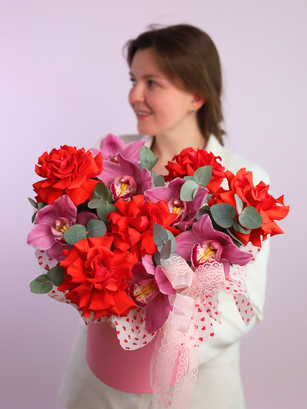 Состав: французские розы, стойкие орхидеи, ароматный эвкалипт.