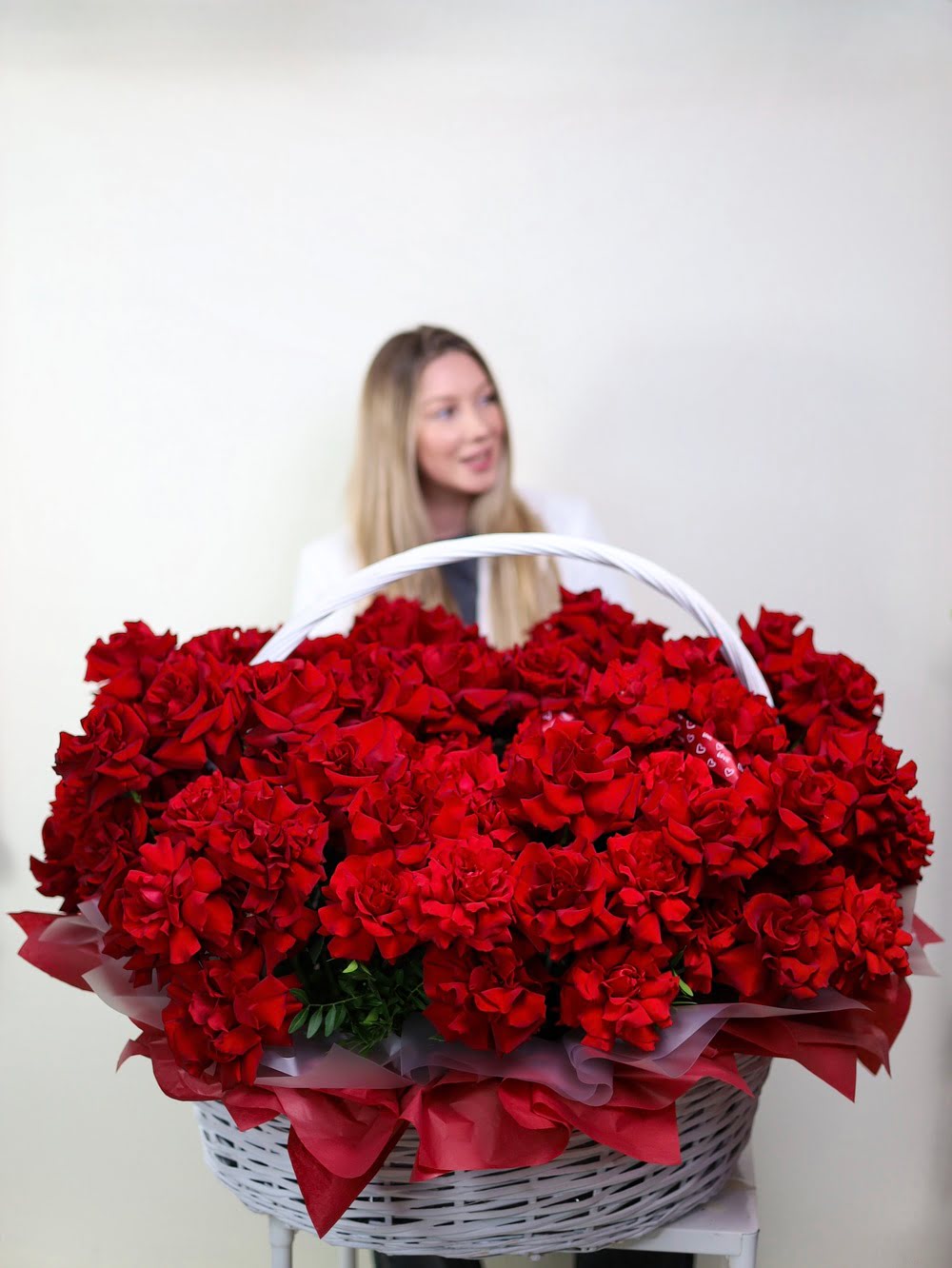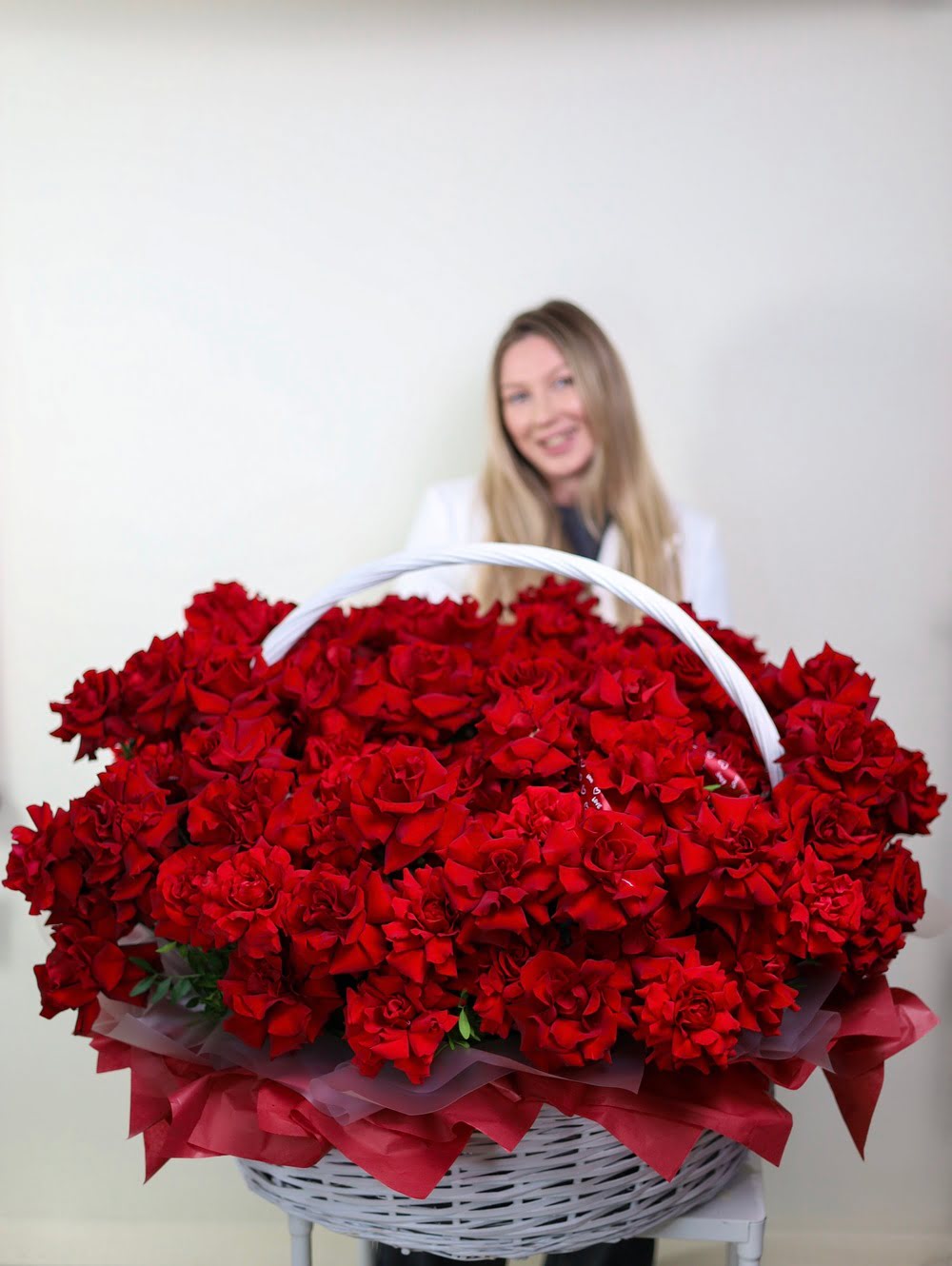 Все букеты собираются максимально похожими, в том числе и оформление.