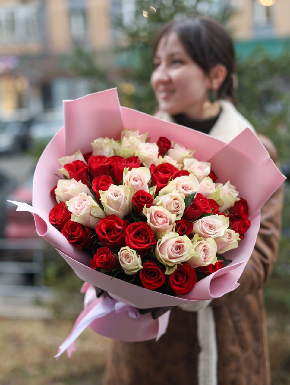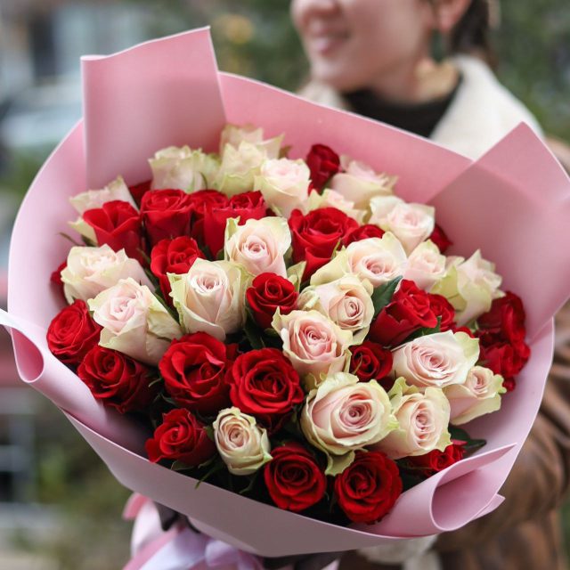 Букет из 51 розы в оформлении.