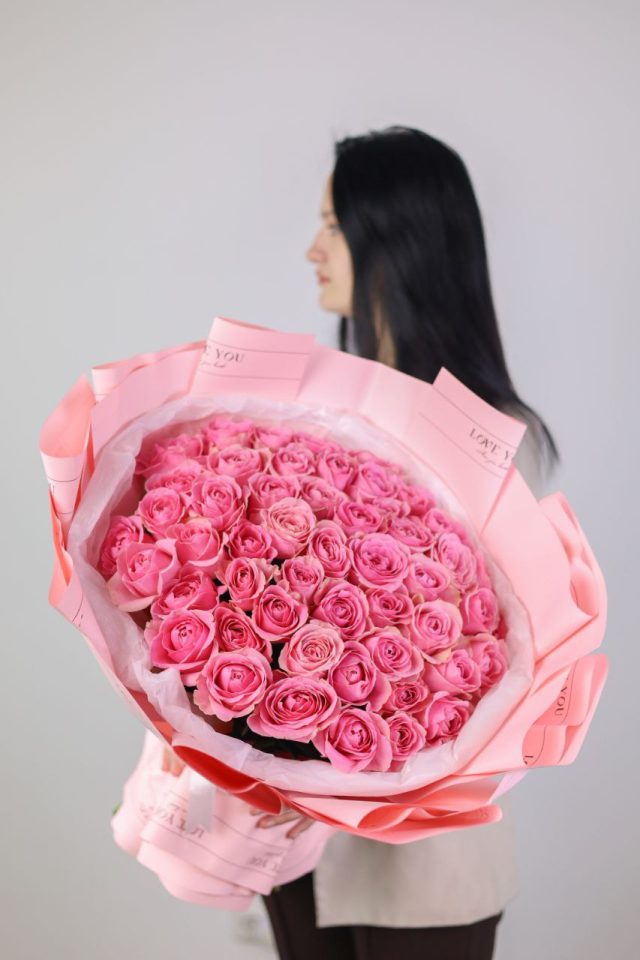 Букет из 51 розы в оформлении.