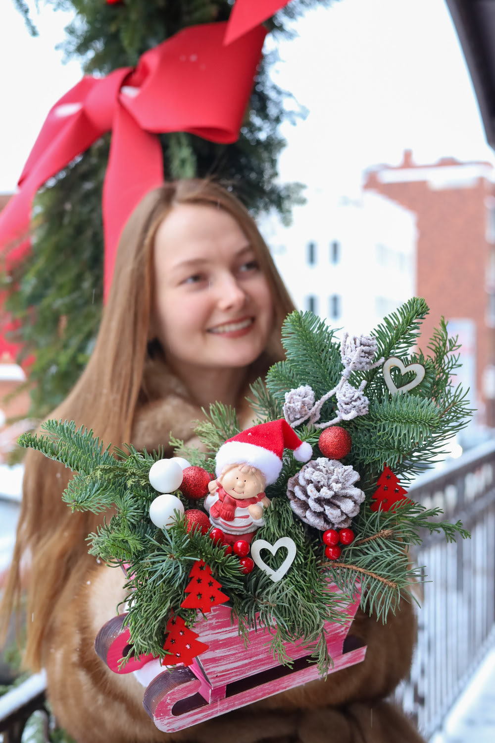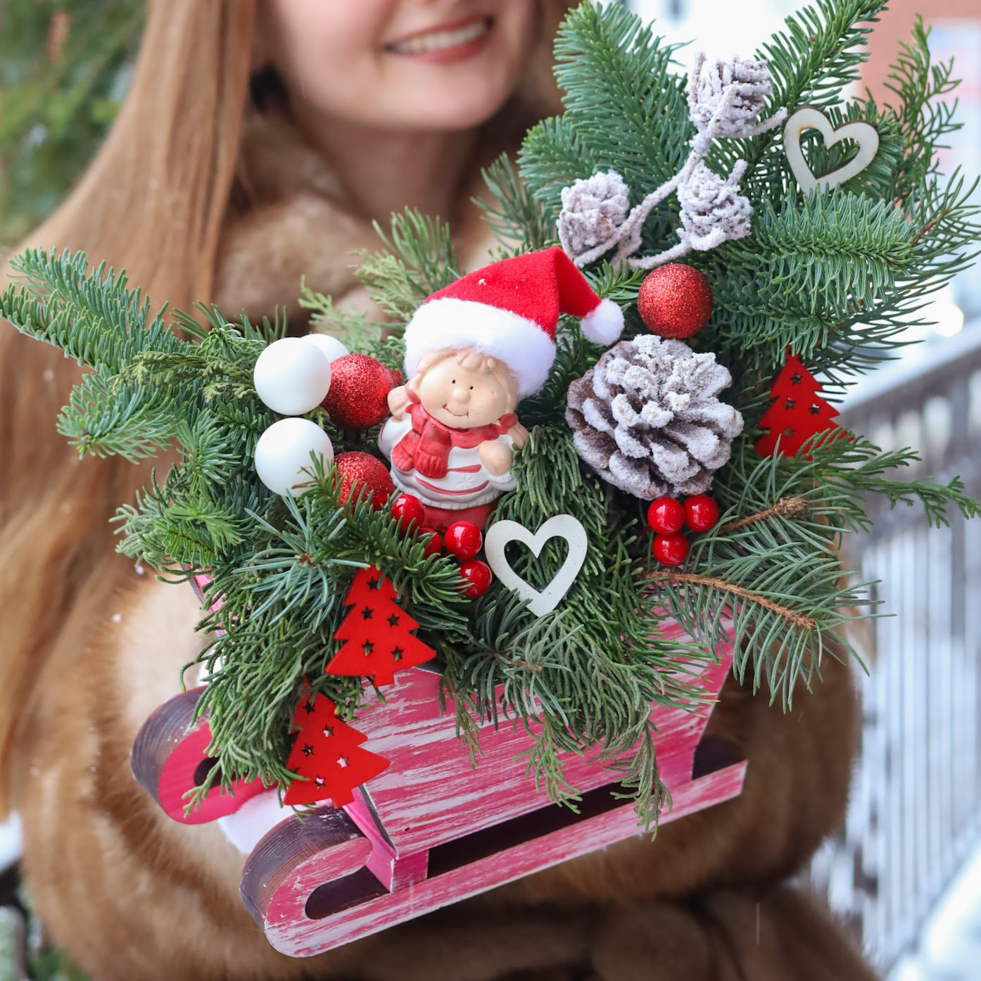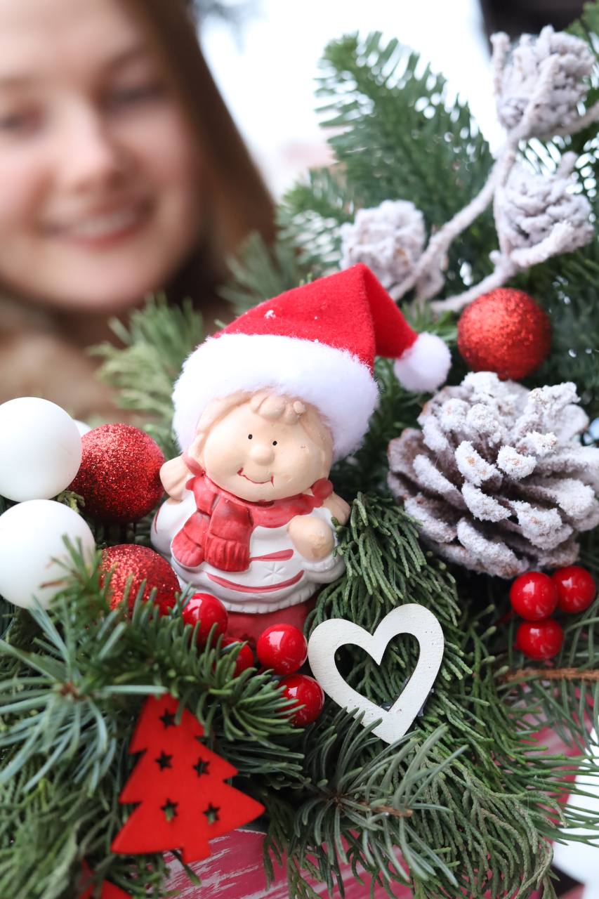 Состав: шишки, новогодний декор, куколка, ель нобилис.