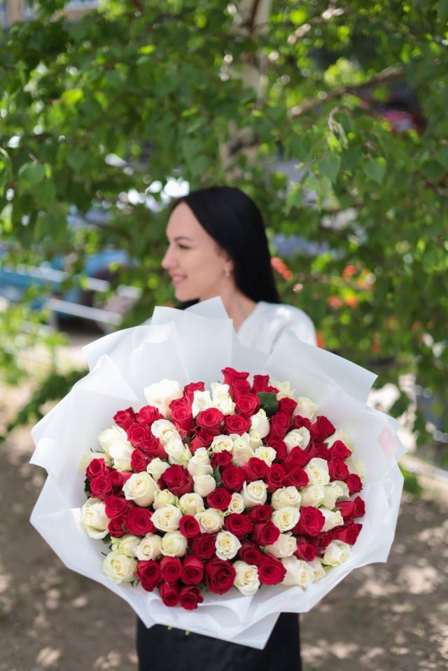 Все букеты собираются максимально похожими, в том числе и оформление.