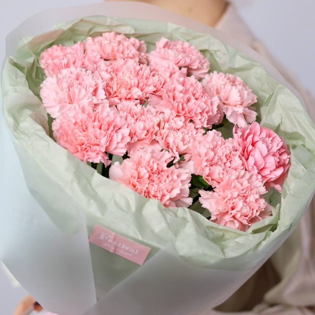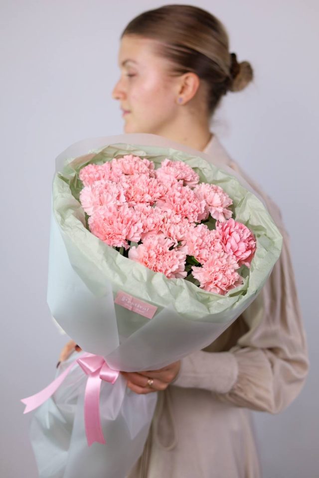 Букет из 15 стойких диантусов в оформлении.