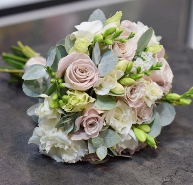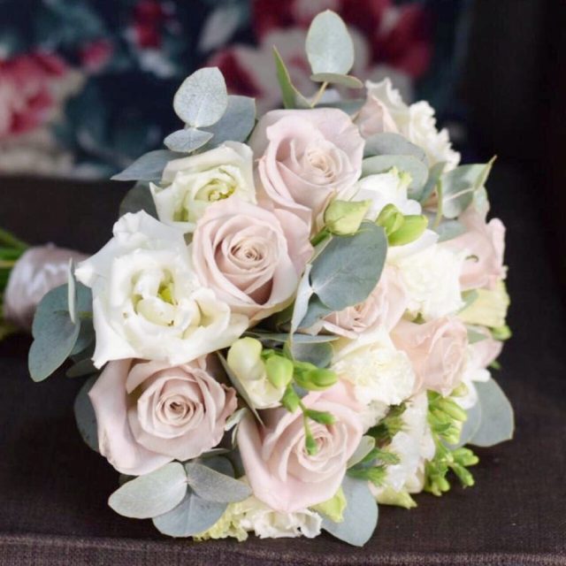 Свадебный букет с розами мента