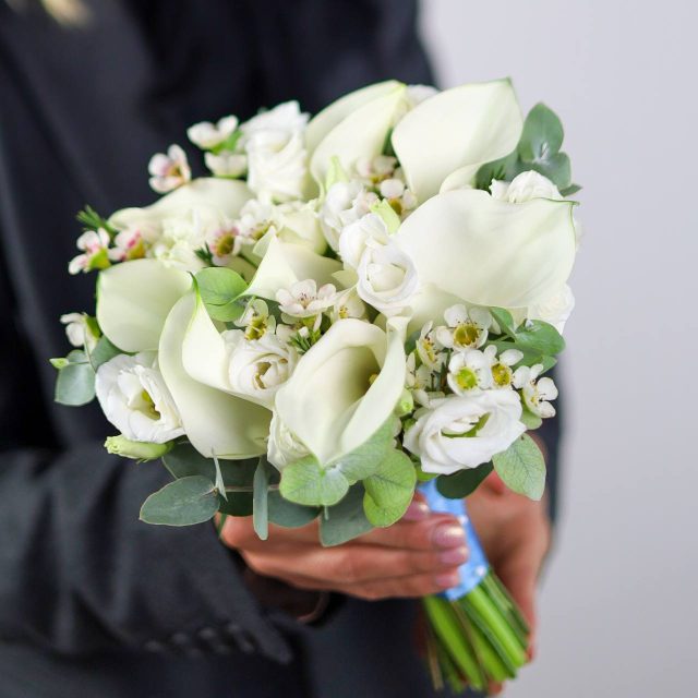 Все букеты собираются максимально похожими, в том числе и оформление.