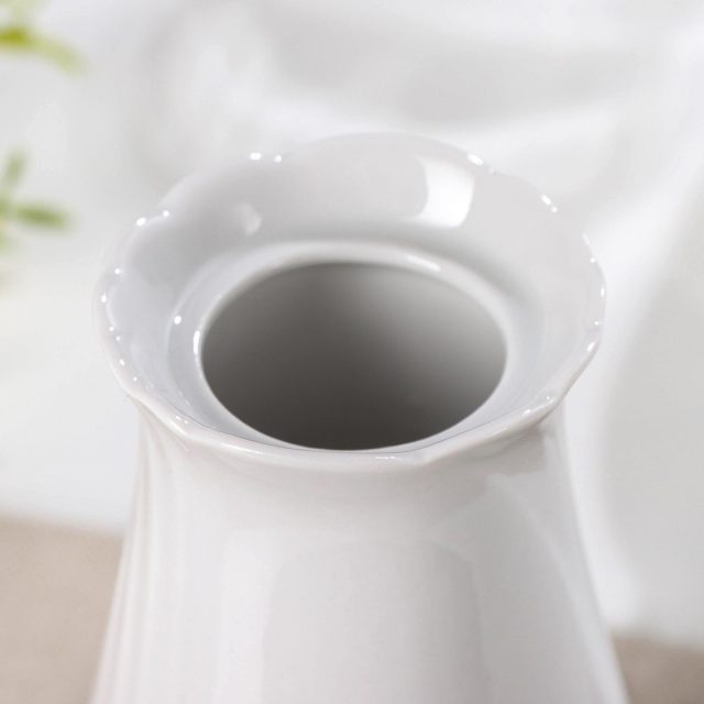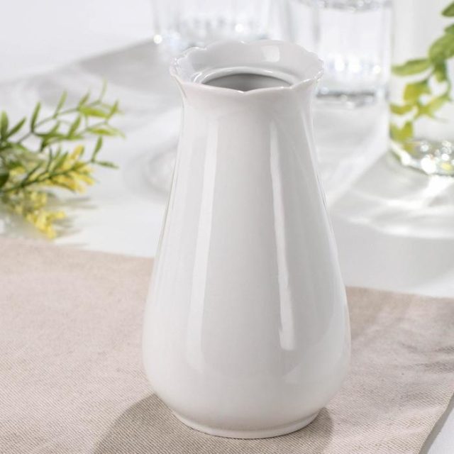 Эта ваза имеет белый цвет и дизайн. Она прекрасно подойдет для украшения интерьера и демонстрации цветов или других предметов декора.