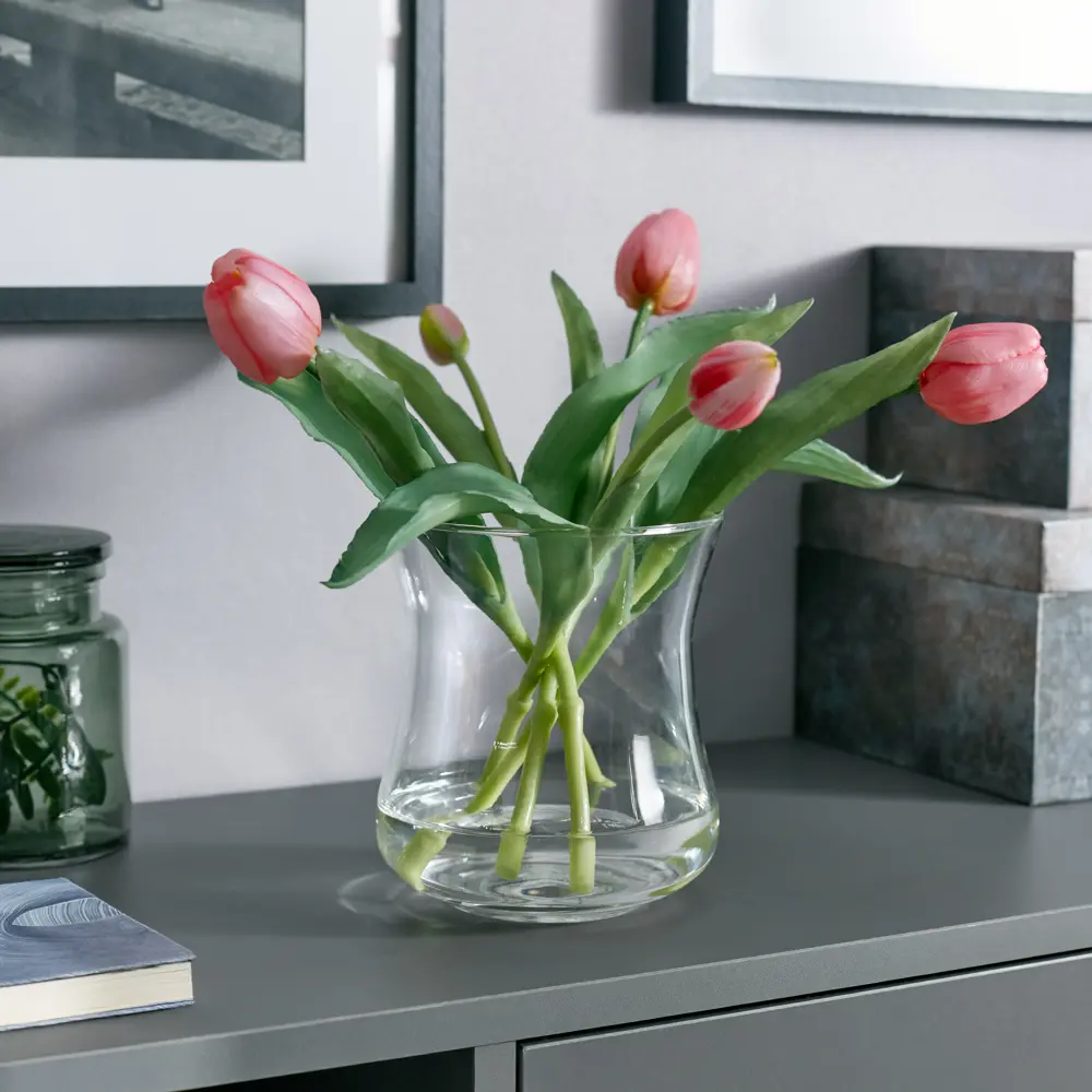 Ваза «Лекси» гармонично впишется в интерьер жилого помещения или офиса, а ее изящная форма добавит обстановке изысканности. Прозрачный сосуд, выполненный из натурального стекла, можно использовать в качестве одиночного декора на полках, комодах или журнальных столиках, а также в сочетании с другими вазами. Подойдет для невысоких букетов, также пригодится для создания бонсаев и композиций из цветного песка.