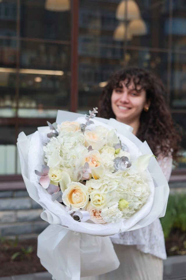 Воздушный букет с ароматными пионовидными розами