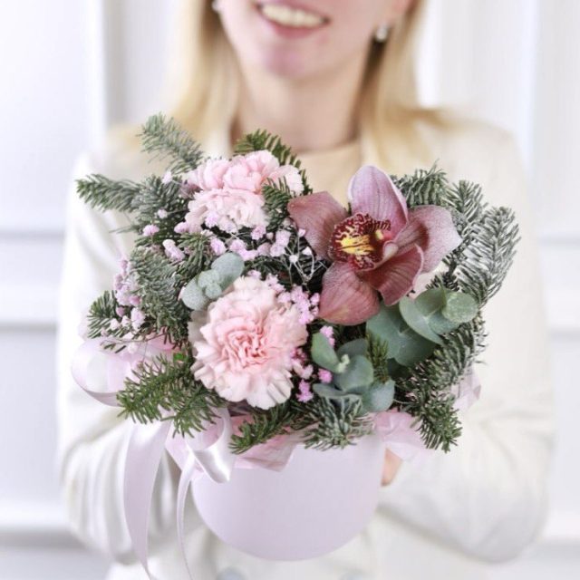 Зимняя композиция с орхидеей