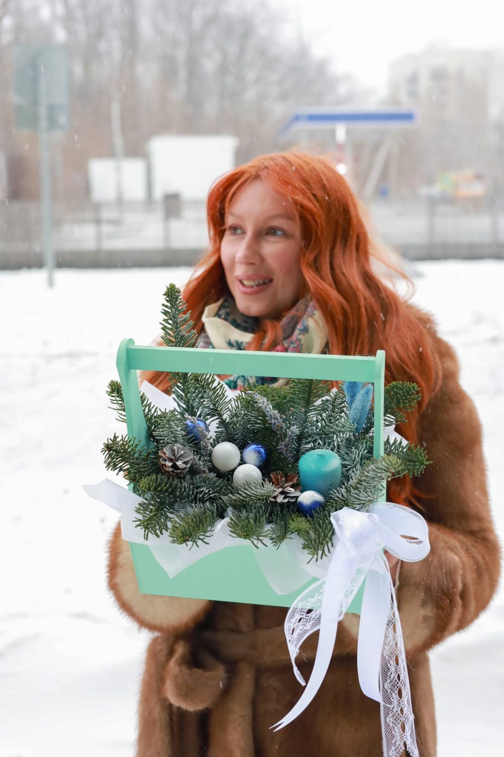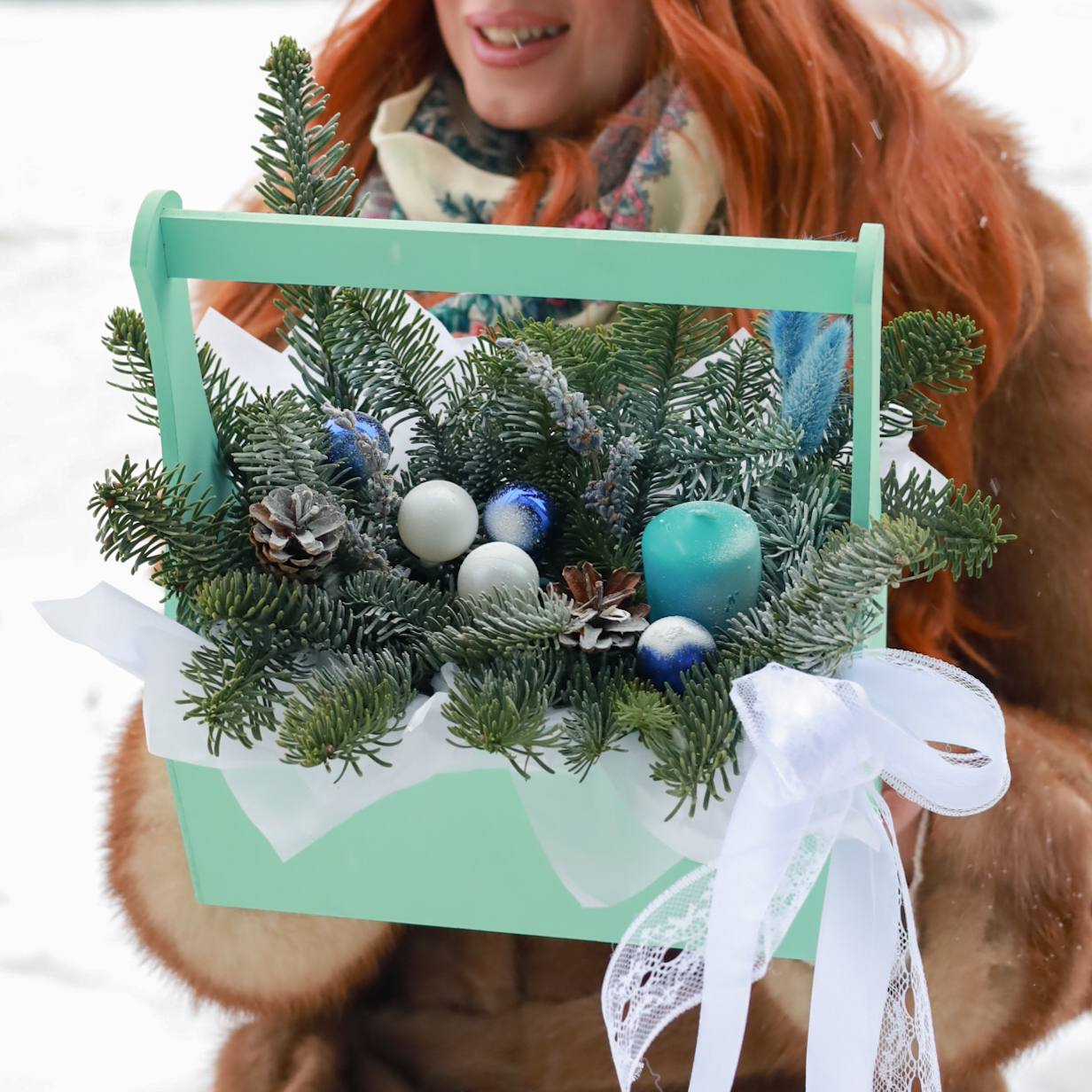 Состав: ель нобилис, шишки, игрушки, свеча.