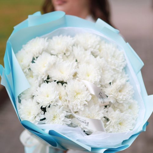 Букет стойкой хризантемы в оформлении